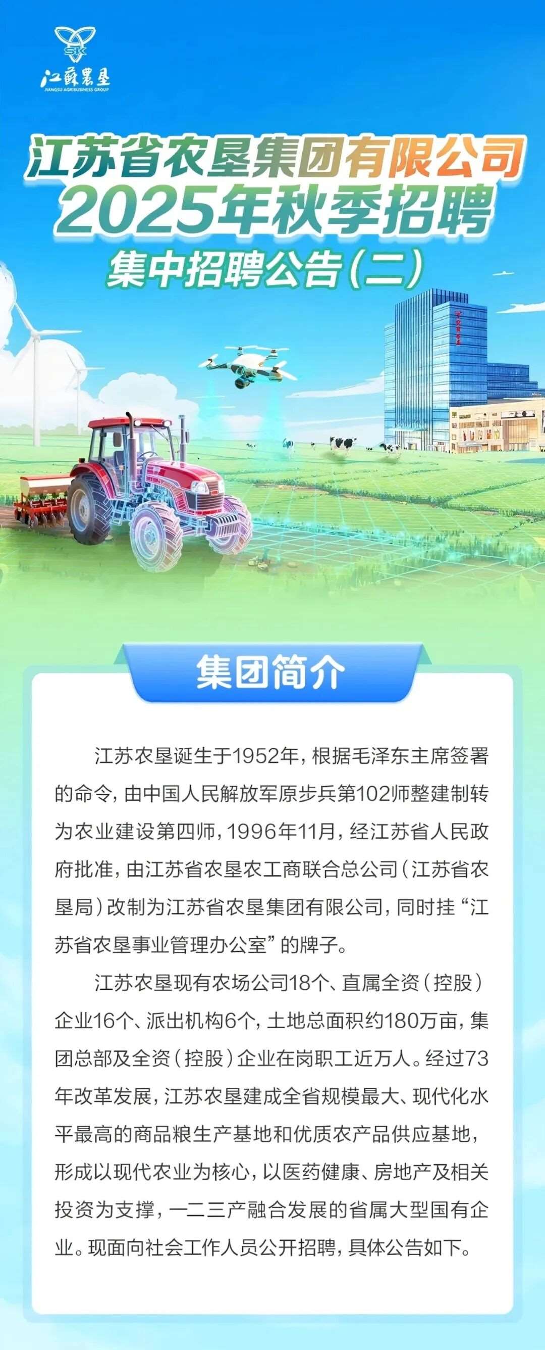 【国企招考】江苏农垦2025年秋季招聘:集中招聘公告(二)